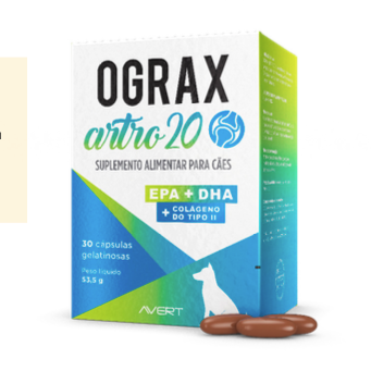 Ograx Artro 20 é um suplemento alimentar composto por nutrientes essenciais às articulações. É indicado para cães que necessitem do aporte desses nutrientes.